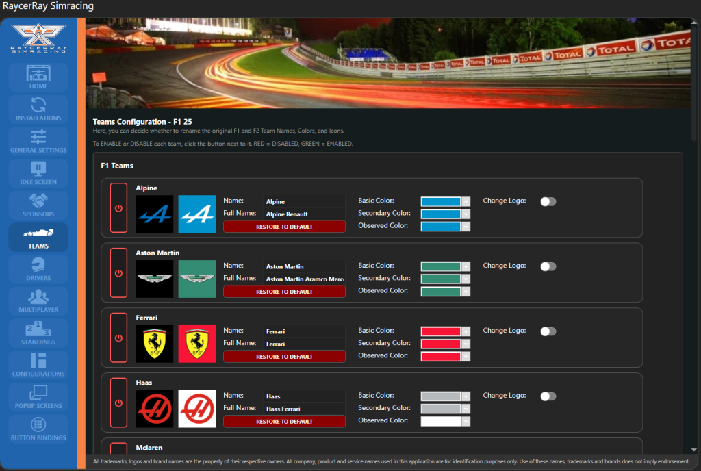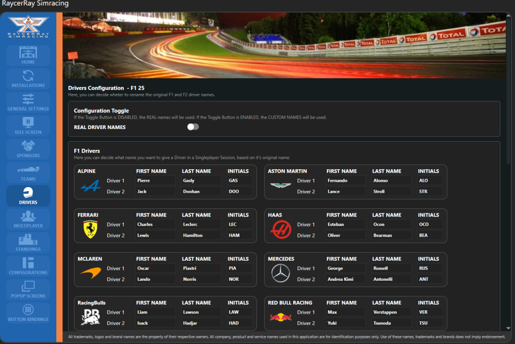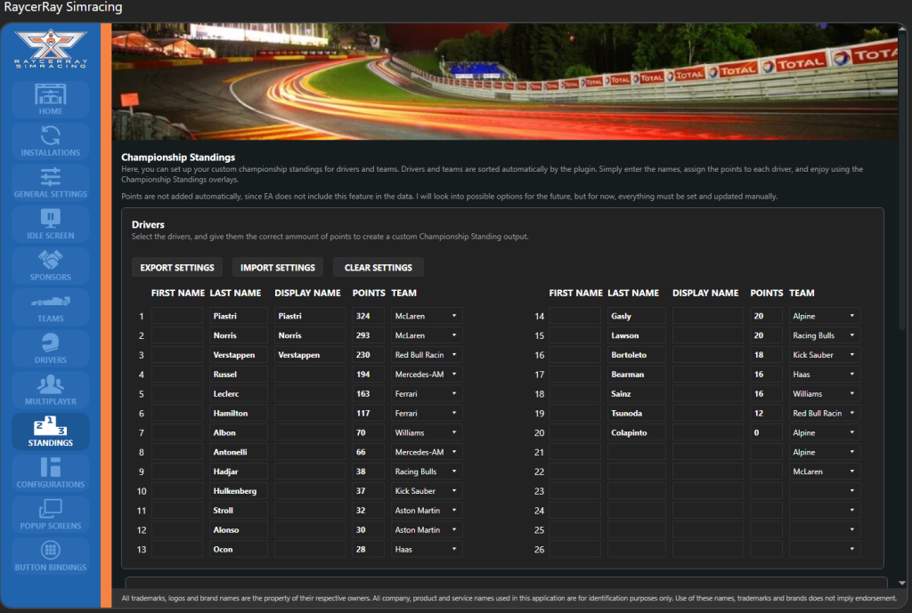 In addition to a large set of outputs, the RaycerRay Simracing plugin also provides various features. These include renaming drivers or team names, renaming multiplayer names, and other generic settings that further enhance the game experience when you use the Cockpits, Dashboards, and Overlays.